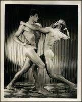 Poling VS McPike Bruce Of LA Studio Male Duo Wrestling PhotographArtful late 1940s photograph by Bruce Bellas, featuring Bob Poling and Marv McPike in a wrestling inspired composition, but looking more like a dance still or modernist sculpture. Really nice. Size/Condition: Measures 4”x 5”. Silver gelatin, double weight fiber paper with pebble finish. Excellent condition w/minor fiber wave. Early Bruce Los Angeles stamp with series number 5-7 to reverse, undated. Purchase price includes domestic insured Priority Mail shipping, First Class for international orders. Follow us on Instagram (@thephysiqueproject) and X/Twitter (@PhysiqueProject) for inventory updates. |