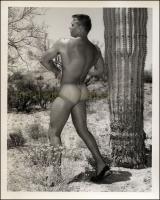 Bruce of LA Posing Strap Male Physique Photo 1940s Desert SeriesFrom the early and popular Desert Series of images, comes this solo shot of an unknown model amongst the rugged flora of the Arizona desert. Size/Condition: 4"x 5", silver gelatin, double weight, fiber based print. In excellent condition, light age toning. Stamped to the reverse with the early "Bruce Los Angeles" mark, and series number 33-13. Undated. Purchase price includes domestic insured Priority Mail shipping, First Class for international orders. Follow us on Instagram (@thephysiqueproject) and X/Twitter (@PhysiqueProject) for inventory updates. |