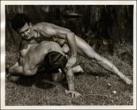 Whitman/WPG Vintage B&W Male Duo Physique Photo McNall & NealReminiscent of a classical sculpture, this wrestling image features models Gene McNall and Bill Neal on location. Size/Condition: 5"x 4". Printed on a double weight, fiber paper with a textured surface. In excellent condition with minor fiber paper wave. Stamp marked Wrestling Series Series 11 No 11 and the early WPG (pre-zip) logo to reverse, undated. Purchase price includes domestic insured Priority Mail shipping, First Class for international orders. Follow us on Instagram (@thephysiqueproject) and X/Twitter (@PhysiqueProject) for inventory updates. |