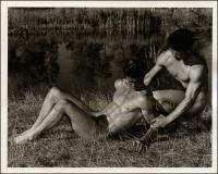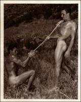 Western Photography Guild Vintage Nude Male Location Physique PhotographClassic allegorical imagery that was popular for duo physique sessions, this one from WPG, featuring a pair of unidentified models on location. Size/Condition: 4"x 5". Printed on a double weight, fiber paper with a textured surface. In excellent condition. Stamp marked Series 6 No 4 and the early WPG (pre-zip) logo to reverse, undated. Purchase price includes domestic insured Priority Mail shipping, First Class for international orders. Follow us on Instagram (@thephysiqueproject) and X/Twitter (@PhysiqueProject) for inventory updates. |
